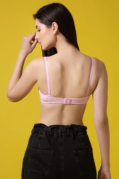 This classic pink T-shirt bra is a wardrobe staple. It is made from a comfortable and breathable cotton-rich fabric. The full-coverage cups ensure no spillage from the top or sides. The cups are non-padded and non-wired for a comfortable, poke-free experience. They are also double-layered to conceal any nipple show, and the seamless design provides a smooth finish under fitted clothing.